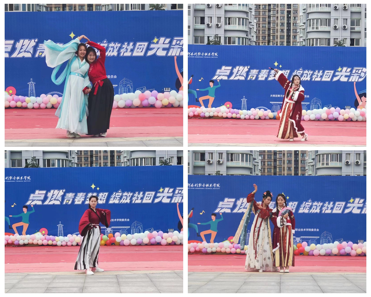 我院社联分会为全校师生带来了三个精彩的节目,由申妍妍、毛海森、崔鑫仪同学带来诗朗诵《诗意中国》,同学们用声情并茂的演讲歌颂伟大祖国大好河山及人民的幸福生活;马晨旭同学的独唱《春风十里》,歌声悠扬动听,展现出青春活力;乔佳滢、王威等17位同学带来的汉服走秀表演,弘扬了中国传统文化,展现了当代大学生积极向上的良好风貌。