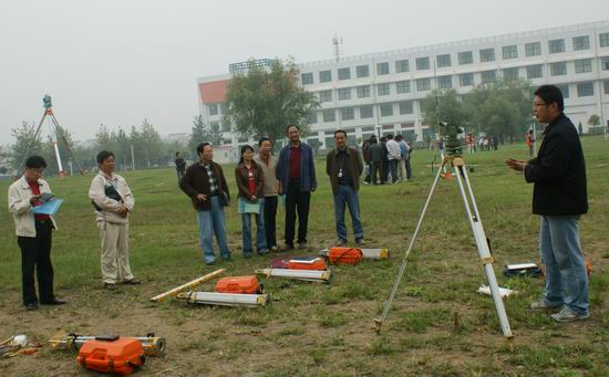 此次考核分四等水准测量(实操)、测回法(实操)和视距测量(10分钟讲课和10分钟内业计算)3项,分别对青年教师的实操能力和讲课能力进行了考核。