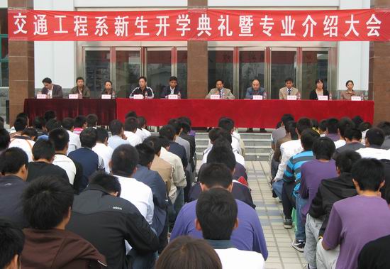 9月11日上午,交通工程系在4号实训楼东举行了“2009级新生开学典礼暨专业介绍大会”。院学生处处长菅浩然、交通系党总支书记孙天星、系主任务新超、副主任田万涛、副书记杜广平,以及各教研室主任、部分辅导员参加了大会,大会由系学工办主任焦东良主持。