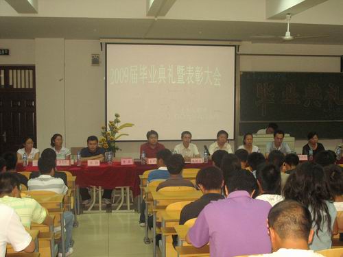 5月9日下午,土木工程系在教学楼6202教室召开了2009届毕业生毕业典礼。学生处副处长朱焕立,土木系党总支书记叶建海、系主任王付全、副书记耿亚杰,系相关教师及2009届毕业生200余人参加了毕业典礼。
