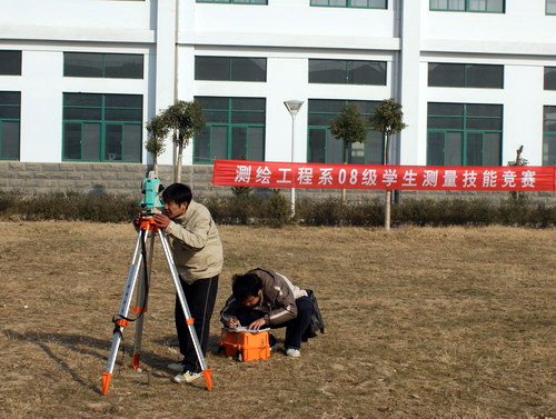 12月14日上午,测绘工程系在8号实训楼下的实训场举办了“08级学生测量技能竞赛”。此次竞赛由测绘工程系部分专业教师担任裁判,系主任赵杰、副主任纪勇,党总支书记周建郑、副书记刘广社以及职业技能训练中心关六三主任观摩了此次比赛。