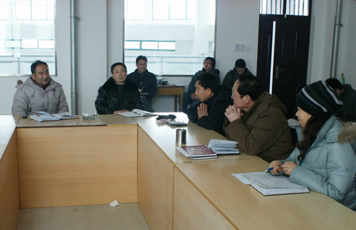 系主任赵杰首先对示范建设资料验收工作进行了分工。此次示范建设资料验收分为八个方面的工作:人才培养方案、教学文本、实验实训条件建设、工学结合、师资队伍建设、精品课程建设、教材建设、考核与认证。这八个方面的工作由四位系领导分别负责。随后该系副主任纪勇和副书记刘广社就各自分管工作对相关人员提出了严格的要求。