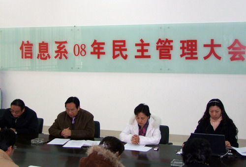 为贯彻落实学院有关召开“二级教代会”的文件精神,经过为期两周的筹备,11月18日下午,信息系在系会议室召开2008年民主管理大会。党总支书记何聚坤主持大会,全系教职工参加了会议。