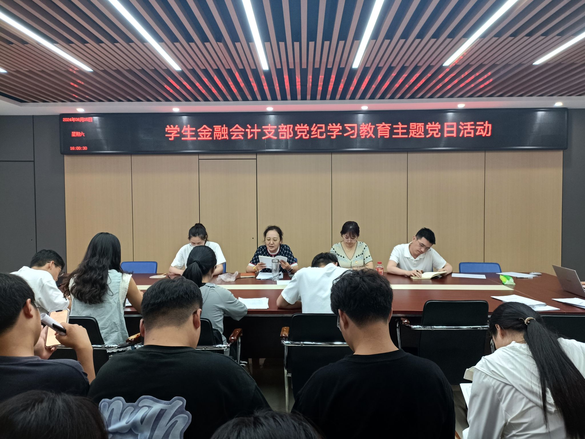 6月14日下午,学生金融会计支部在SY5412会议室开展党纪学习教育主题党日活动,支部全体师生党员参加,会议由支部书记马峥主持。