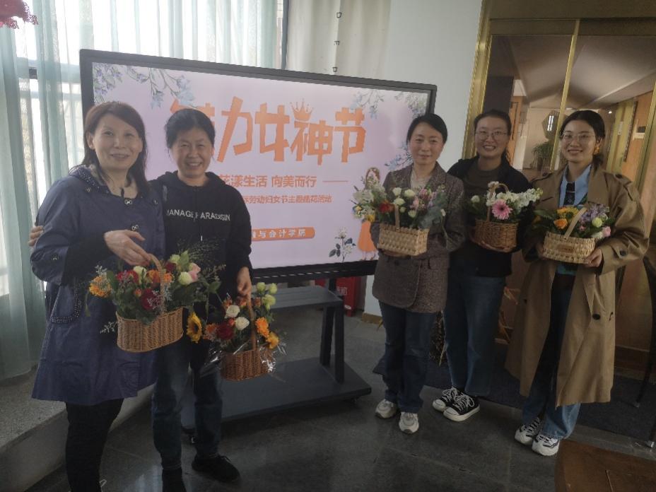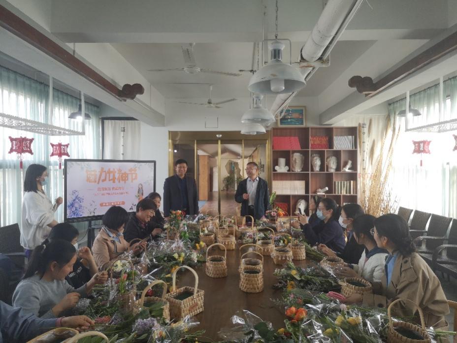 金融与会计学院院领导班子到场祝贺,在插花活动开始前,李冠军院长发表了热情洋溢的讲话,向全体女教工同志表达了衷心的祝福,祝福各位女教工美丽如花,生活如花似锦!吴宗奎书记表达了同样的心情,祝愿各位女教工节日快乐!