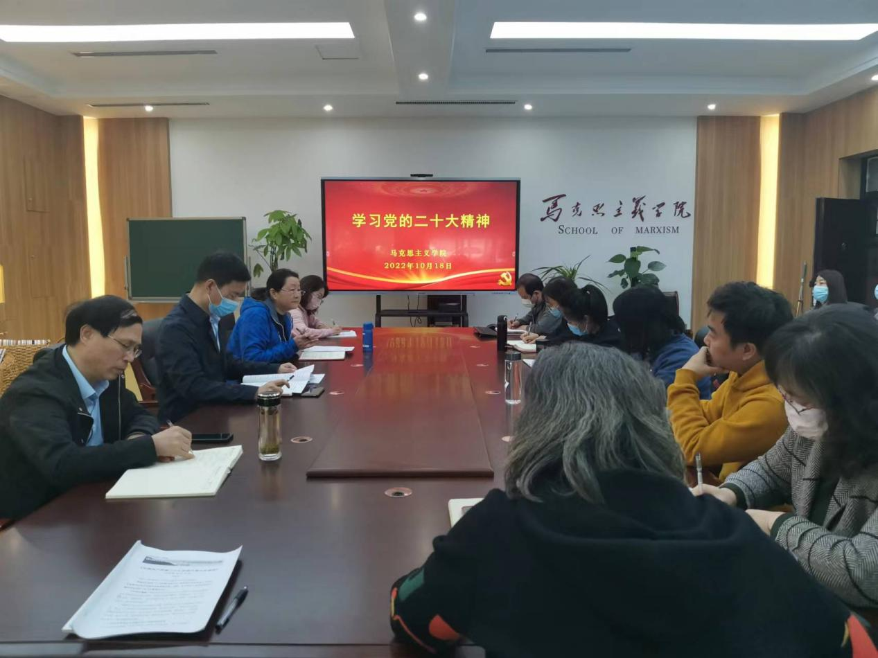 马克思主义学院院长焦红强表示,习近平总书记在二十大开幕会上的报告中指出:“只有把马克思主义基本原理同中国具体实际相结合、同中华优秀传统文化相结合,坚持运用辩证唯物主义和历史唯物主义,才能正确回答时代和实践提出的重大问题,才能始终保持马克思主义的蓬勃生机和旺盛活力。”十八大以来,我们党坚持“两个结合”,深入回答关系党和国家事业发展、党治国理政的一系列重大时代课题,深化对共产党执政规律、社会主义发展规律、人类社会发展规律的认识,创立了习近平新时代中国特色社会主义思想,为新时代党和国家事业发展提供了根本遵循。马克思主义学院今后一段时期要重点做好以下三方面工作:一是组织教师学深悟透“新思想”和党的二十大精神。要坚持读原著、学原文、悟原理的优良传统,精研细读《习近平谈治国理政》(1-4卷),深入学习研究习近平新时代中国特色社会主义思想;以党的二十大报告单行本为基本资料,结合中央宣讲团的理论报告深刻领会党的二十大精神。二是加强青年学生的理论武装工作。用习近平新时代中国特色社会主义思想和党的二十大精神对青年学生进行理论武装,是学校落实立德树人根本任务的应有之义。马克思主义学院将组织教师在学深悟透的基础上,认真研讨二十大精神进课堂工作,努力用党的科学理论武装青年,用党的初心使命感召学生。三是积极筹备党的二十大精神理论宣讲工作。人民性是马克思主义的本质属性,党的理论来自人民、为了人民、造福人民,是人民群众认识世界和改造世界的强大思想武器。理论一经掌握群众,也会变成物质力量。马克思主义学院将按照学校要求,积极筹备党的二十大精神理论宣讲工作,努力推动党的理论为人民群众所喜爱、所认同、所拥有。