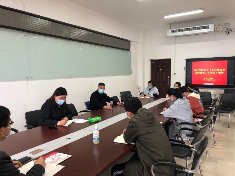 5月9日下午,信息工程学院在SY5508召开关于学习学校《安全管理及返校复学工作》会议。院全体科级干部和辅导员参会,会议由院党委书记罗朝峰主持。