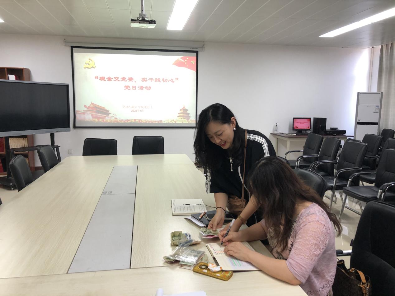 全体党员按照党费标准分支部依次进行现场足额交纳,张嫚和周倩两位老师对收取的党费进行认真记录和清点,最终圆满完成本次党费上交工作。通过本次主题党日活动,进一步强化了全体党员师生的身份认同感,增强了党员们的组织观念、责任感和使命感。同时,提高了党支部的凝聚力和向心力,规范了党支部的组织生活。