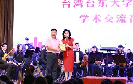 随后,由台湾台东大学管弦乐团音乐系主任郭教授赠与黄河水院艺术系主任华雷感谢状。